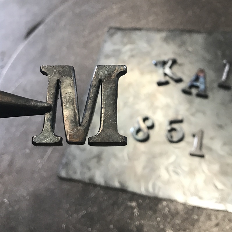 明朝系アルファベットのアイアンプレート表札を製作中です。